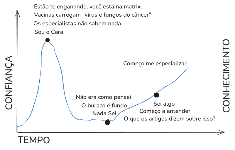 Além disso, indivíduos incompetentes, quando comparados aos seus pares, tendem a se acharem melhores e mais valorizados que os indivíduos competentes. Os estudos não fazem um recorte por gênero, mas a experiência prática nos mostra que mulheres competentes sofrem uma insegurança muito maior que homens. Mas existe o outro lado, quando não sabemos que não sabemos, achamos realmente que sabemos de algo.